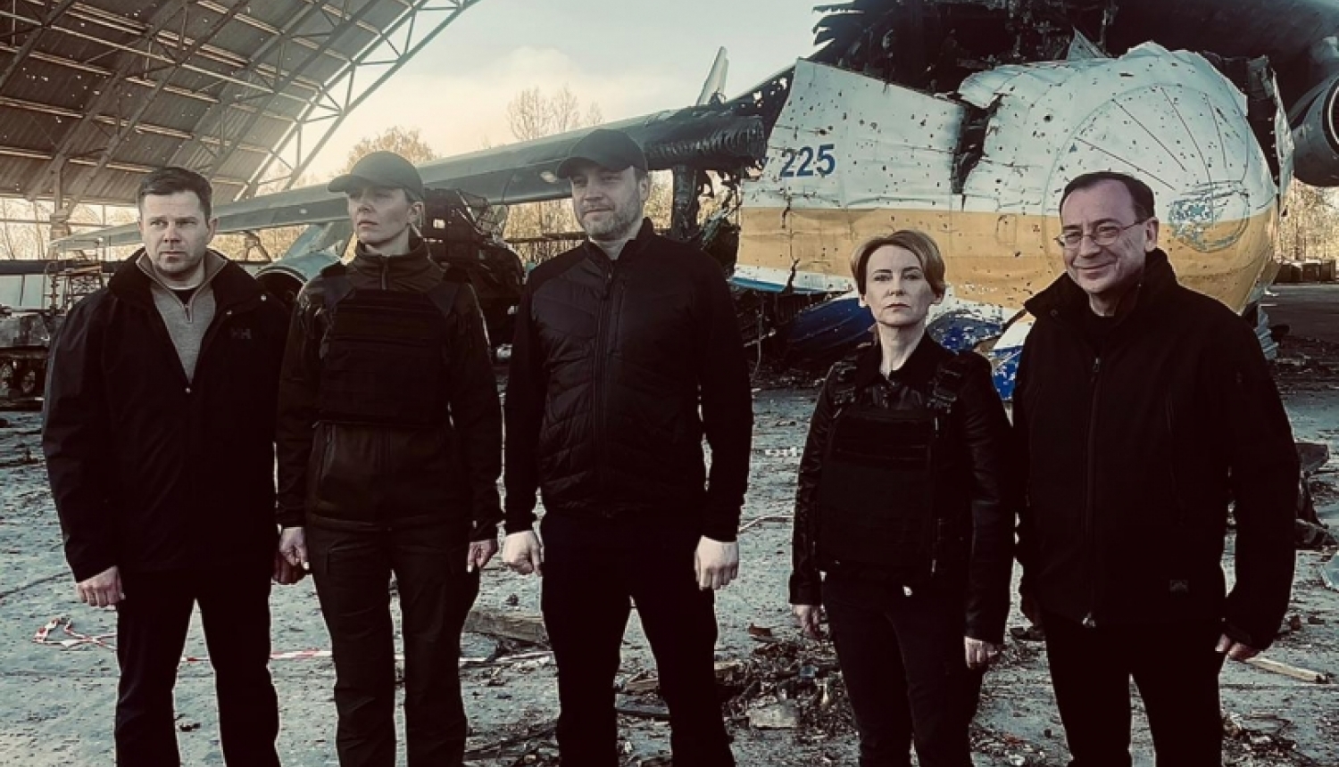 During their stay, the Ministers for the Interior visited the partially destroyed Hostomel, witnessing the consequences of the temporary Russian occupation and hearing about the experiences of the National Guard in protecting the airport from the invaders. The Ministers were briefed on the process of clearing the rubble from the bombed-out residential buildings, and visited the Hostomel Airport and the hangar of the “Mriya” aircraft.