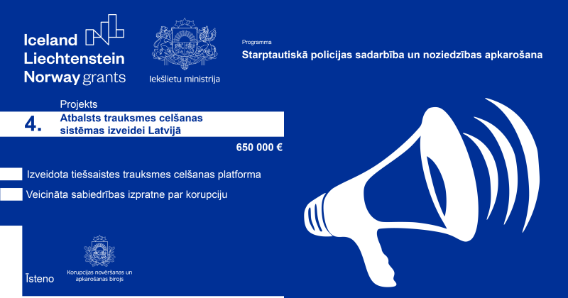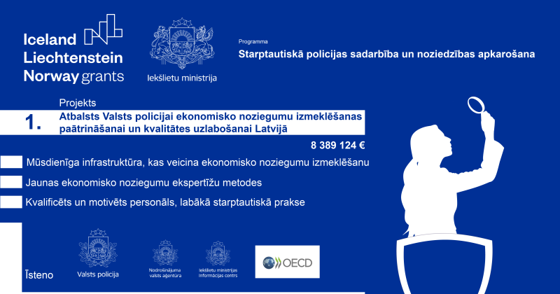 - Atbalsts Valsts policijai ekonomisko noziegumu izmeklēšanas paātrināšanai un kvalitātes uzlabošanai Latvijā;