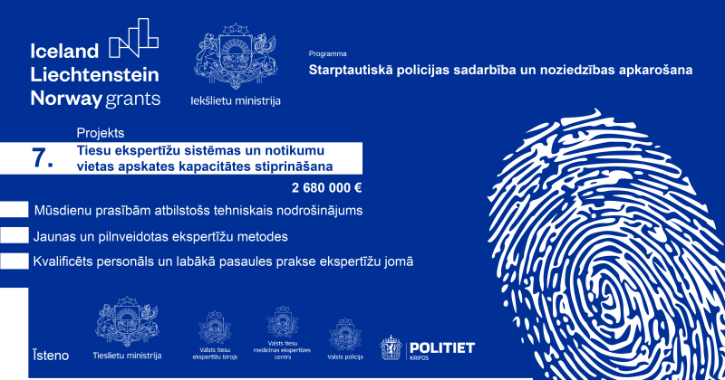 - Uzlabotas Latvijas tiesu ekspertīžu sistēmas spējas, atjaunojot un papildinot tehnisko nodrošinājumu, kā arī uzlabojot zināšanas un gūstot praksi inovatīvu metožu pielietošanā, piemēram, nozieguma vietu trīs dimensiju skenēšanā.