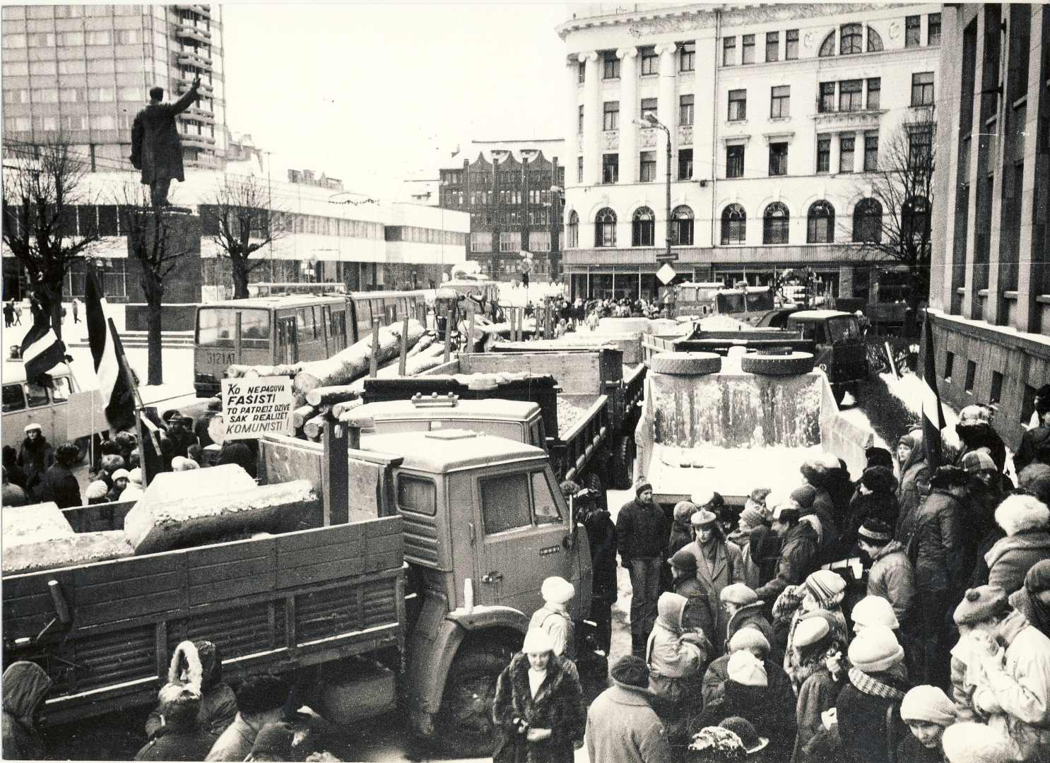 Rīga, 11. novembra krastmala, 1991. gads; Autors – Andris Budrings; Foto no 1991. gada barikāžu muzeja krājuma