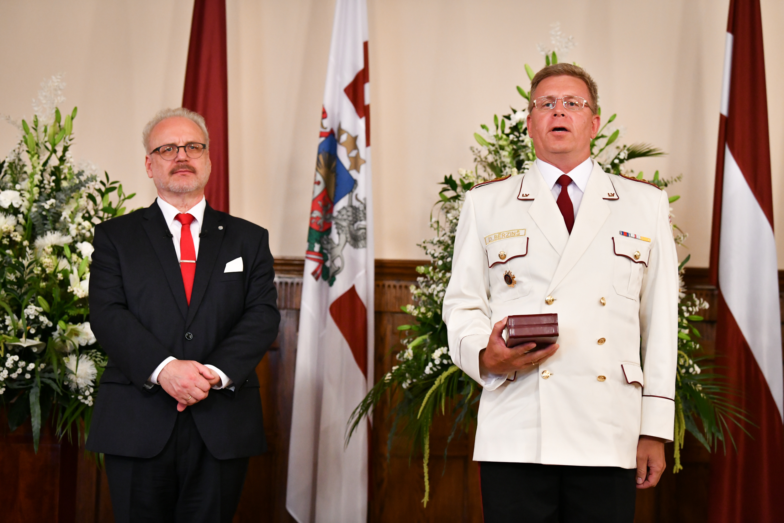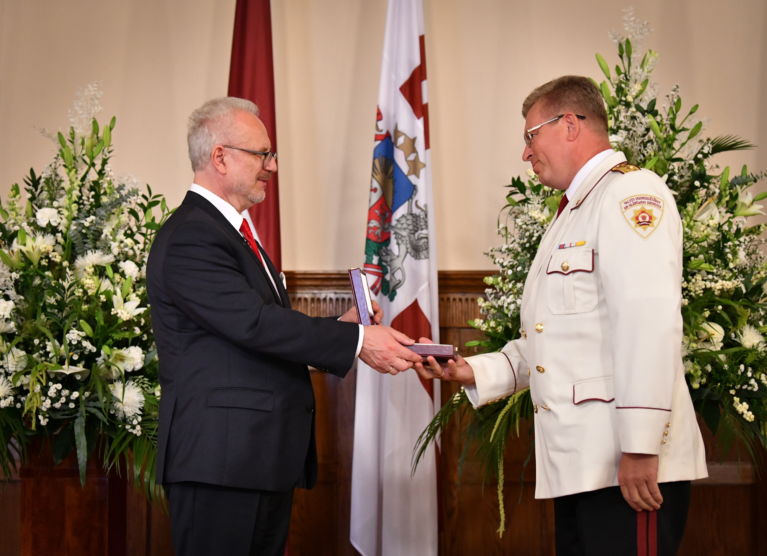 Piektdien, 21. augustā, Valsts prezidents Egils Levits pasniedza augstākos Latvijas valsts apbalvojumus 67 sabiedrības pārstāvjiem, kuru vidū bija arī iekšlietu dienestu darbinieki. Tika pasniegti šādi valsts augstākie apbalvojumi: Triju Zvaigžņu ordenis, Viestura ordenis un Atzinības krusts. Iekšlietu amatpersonas saņēma Viestura ordeņus.