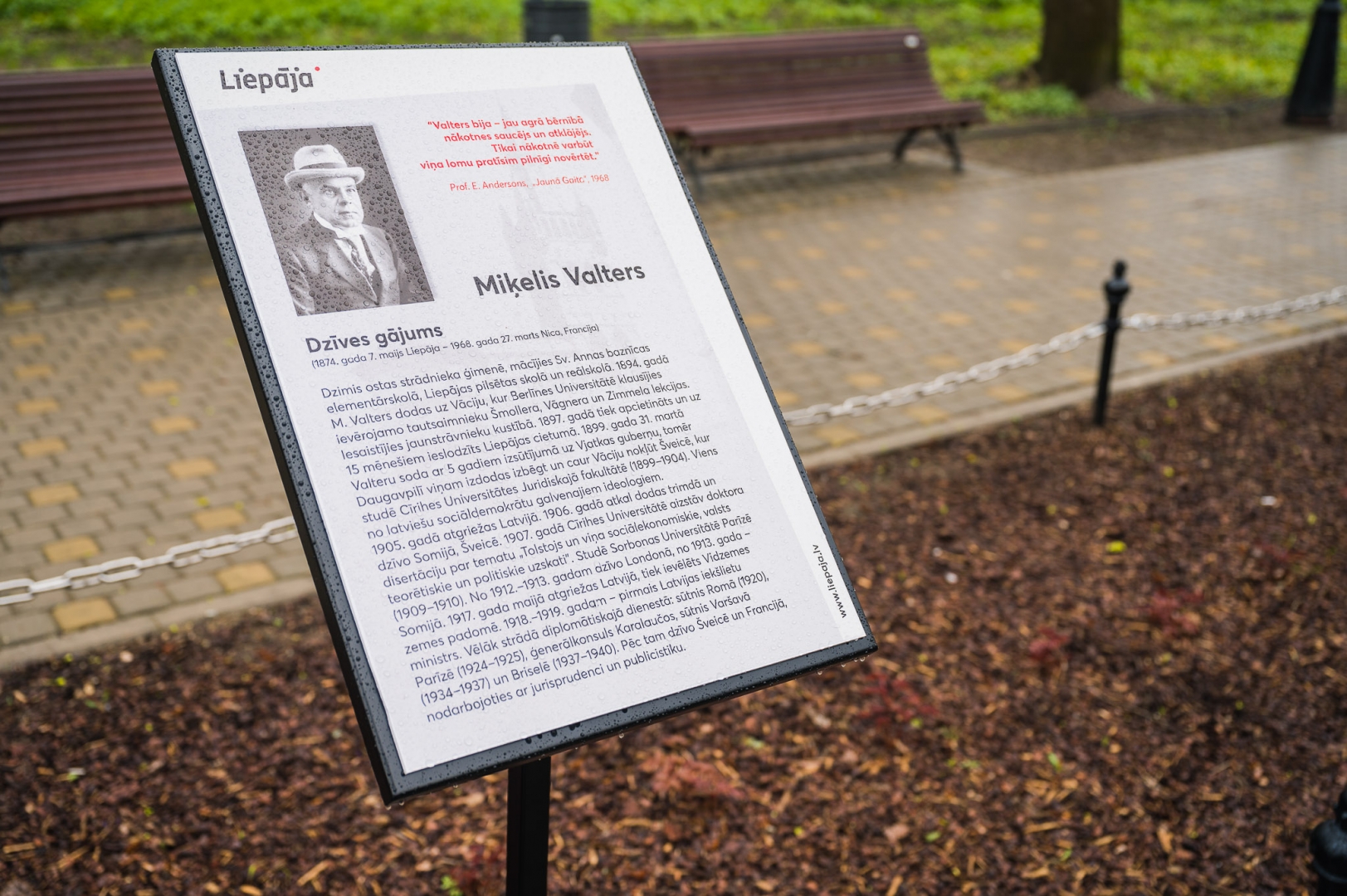 Piektdien, 7. maijā, tika atklāta pirmā iekšlietu ministra, diplomāta un literāta Miķeļa Valtera iela, tādejādi godinot viņa ieguldījumu Latvijas valsts tapšanā un atzīmējot viņa dzimšanas dienu. Turpmāk Liepājas Peldu ielas posms no Hika ielas līdz Kūrmājas prospektam, kā arī gājēju ceļš starp Gulbju dīķi un peldu iestādi tiks dēvēts par Miķeļa Valtera ielu.
