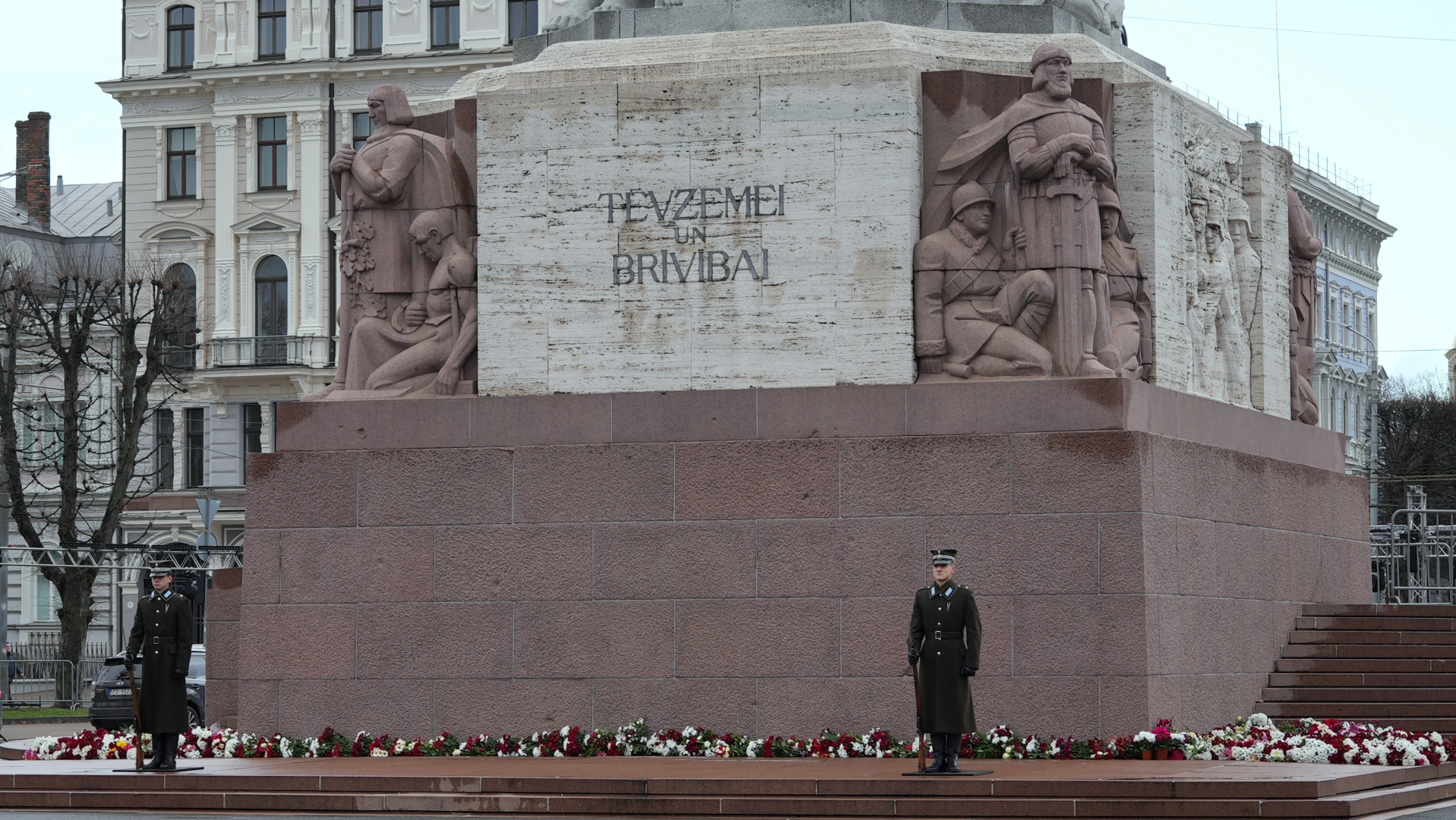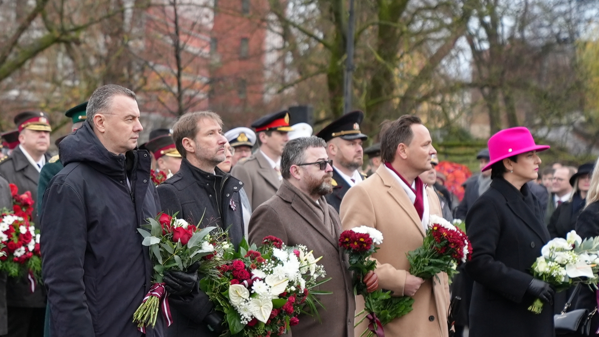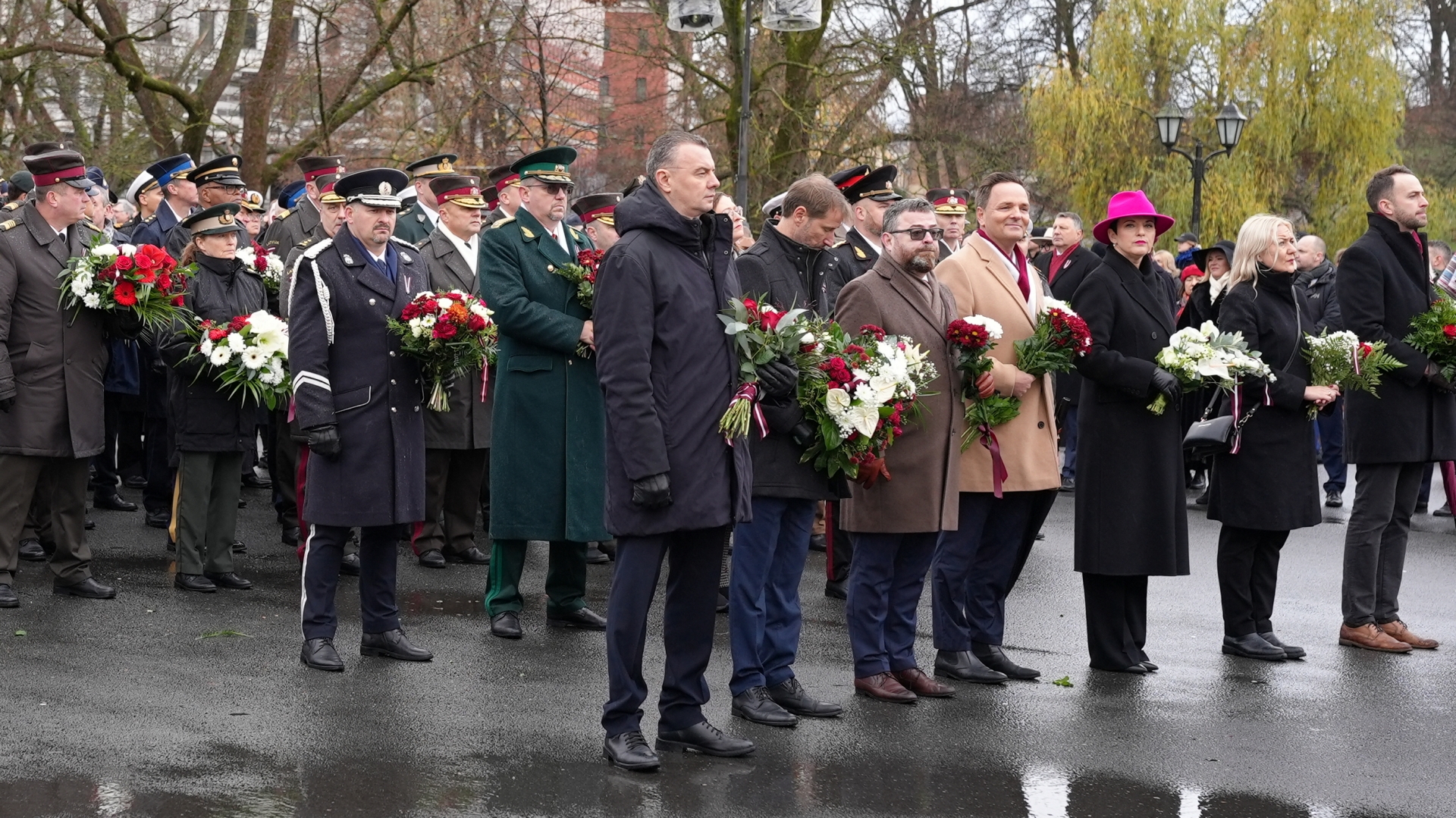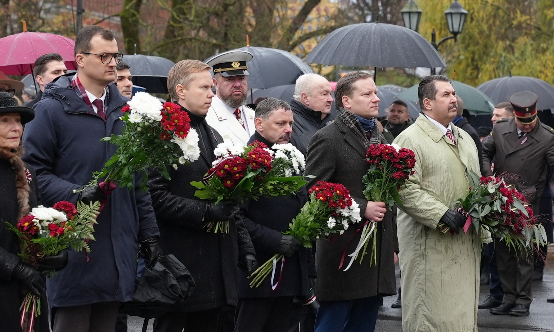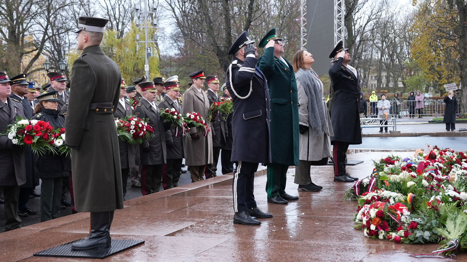 Iekšlietu ministrijas vadība un iekšlietu dienestu vadītāji noliek ziedus pie Brīvības pieminekļa par godu Latvijas Proklamēšanas gadadienai
