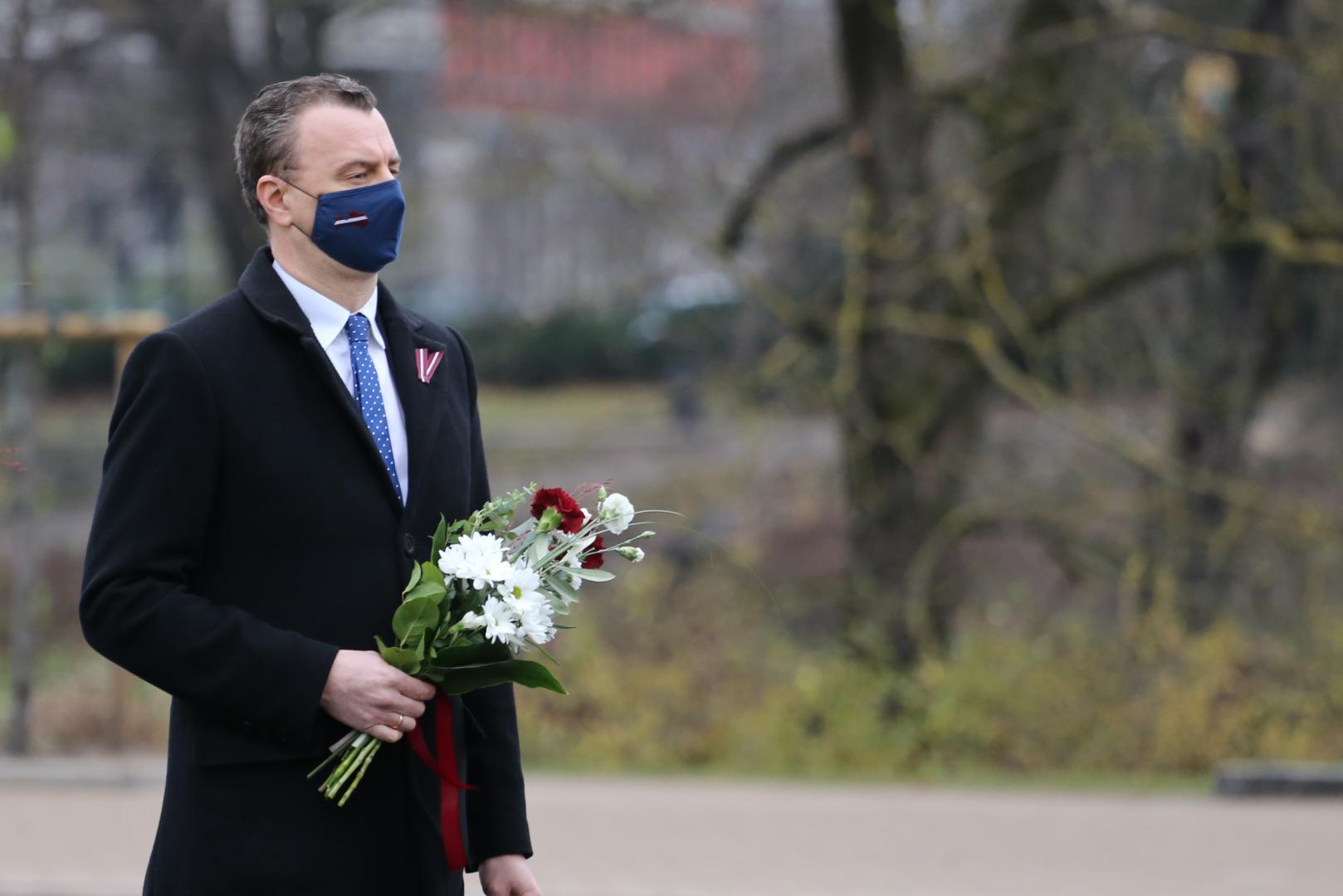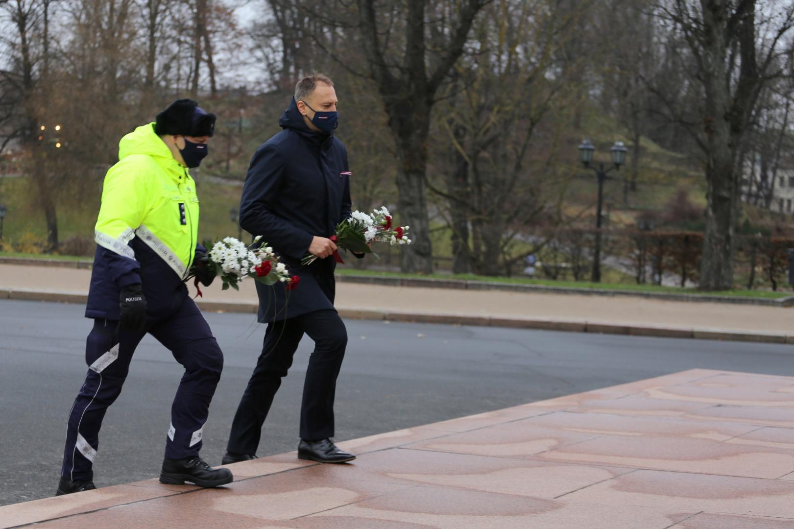 Iekšlietu ministrs un valsts sekretārs noliek ziedus pie Brīvības pieminekļa un Bastejkalnā