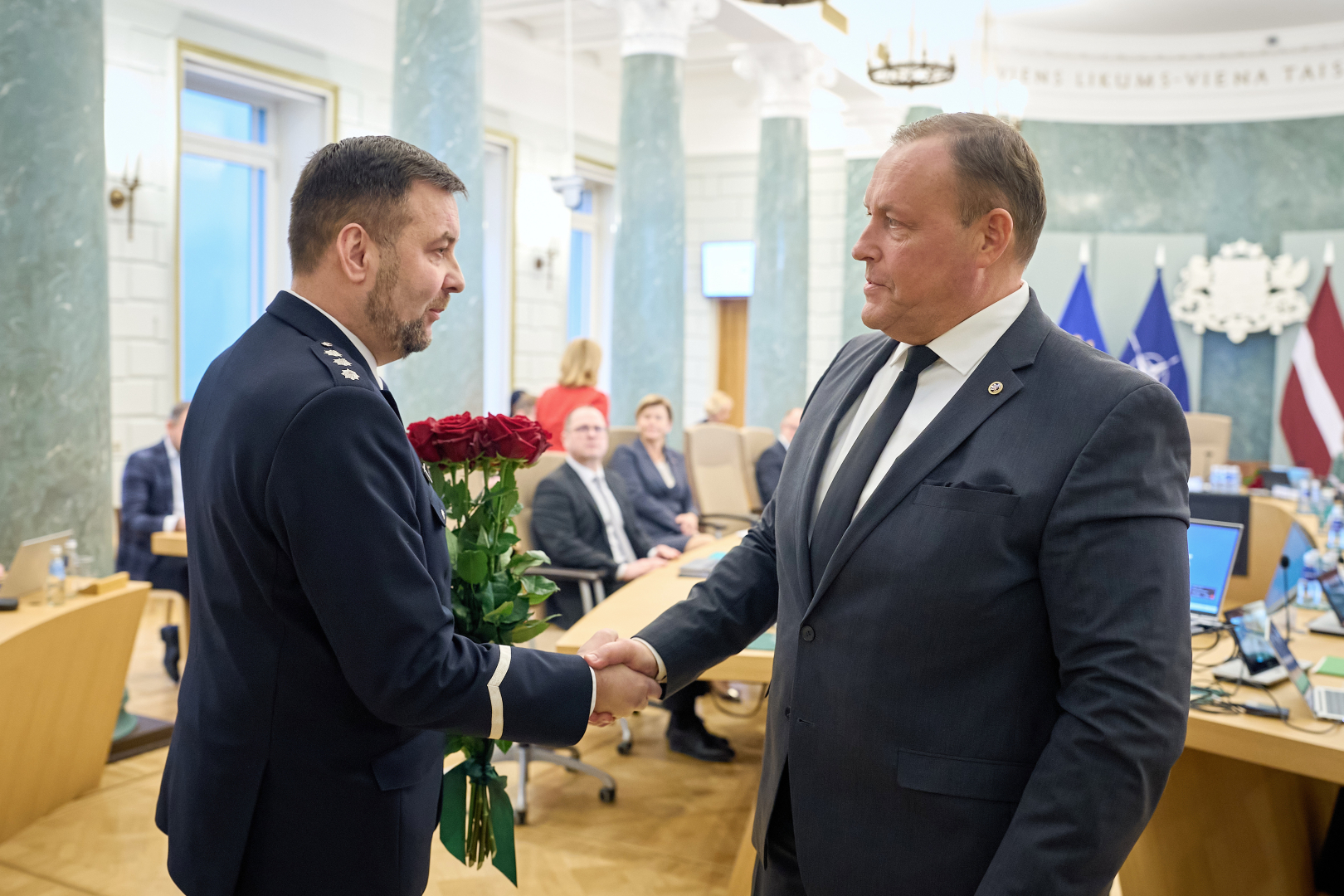 Otrdien, 10. martā, Ministru kabinets saskaņā ar Iekšlietu ministrijas sistēmas iestāžu un Ieslodzījuma vietu pārvaldes amatpersonu ar speciālajām dienesta pakāpēm dienesta gaitas likumu piešķīra ģenerāļa speciālās dienesta pakāpes trim iekšlietu dienestu amatpersonām – Ivaram Nakurtam, Jurim Staļģevicam un Jānim Grīnbergam.