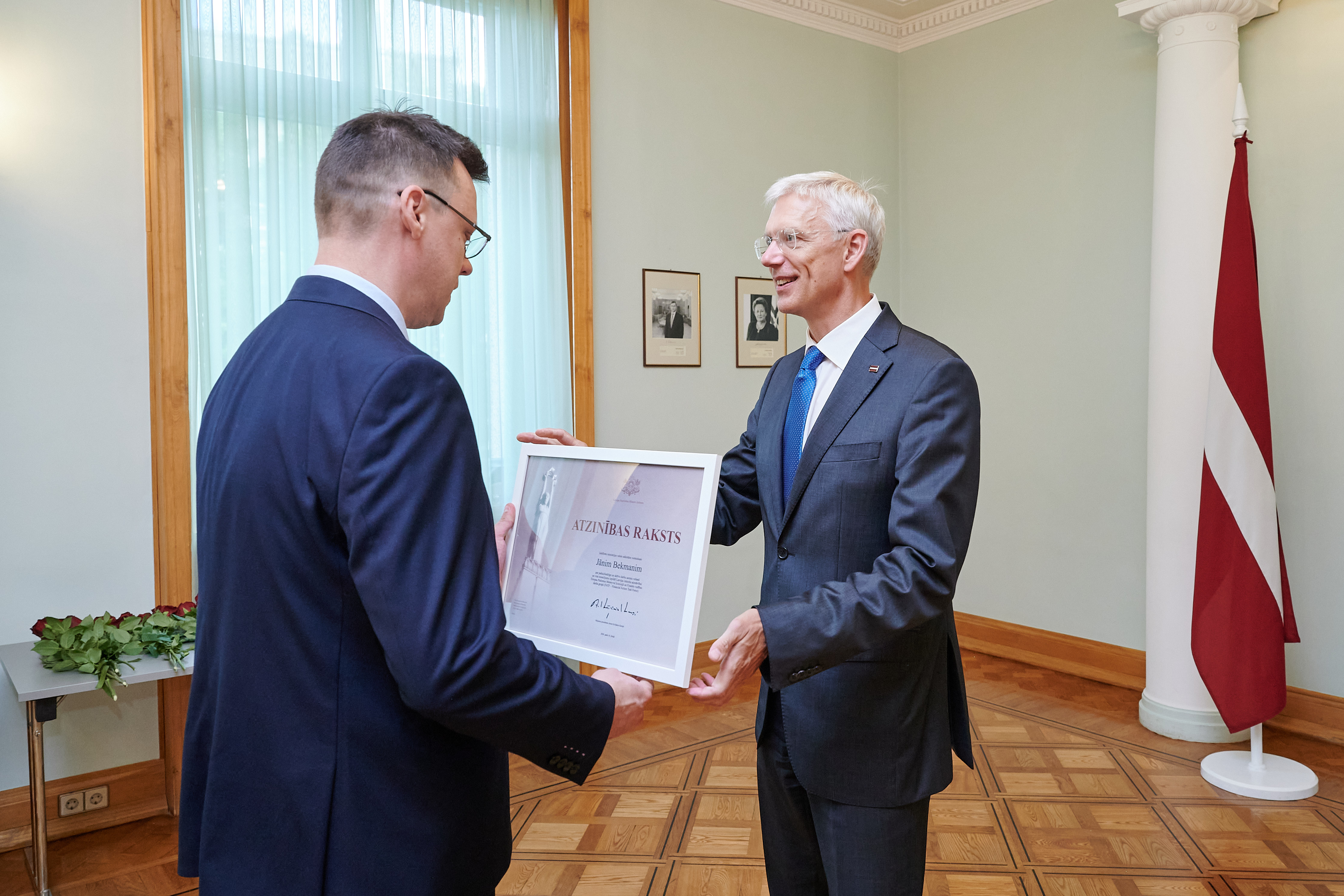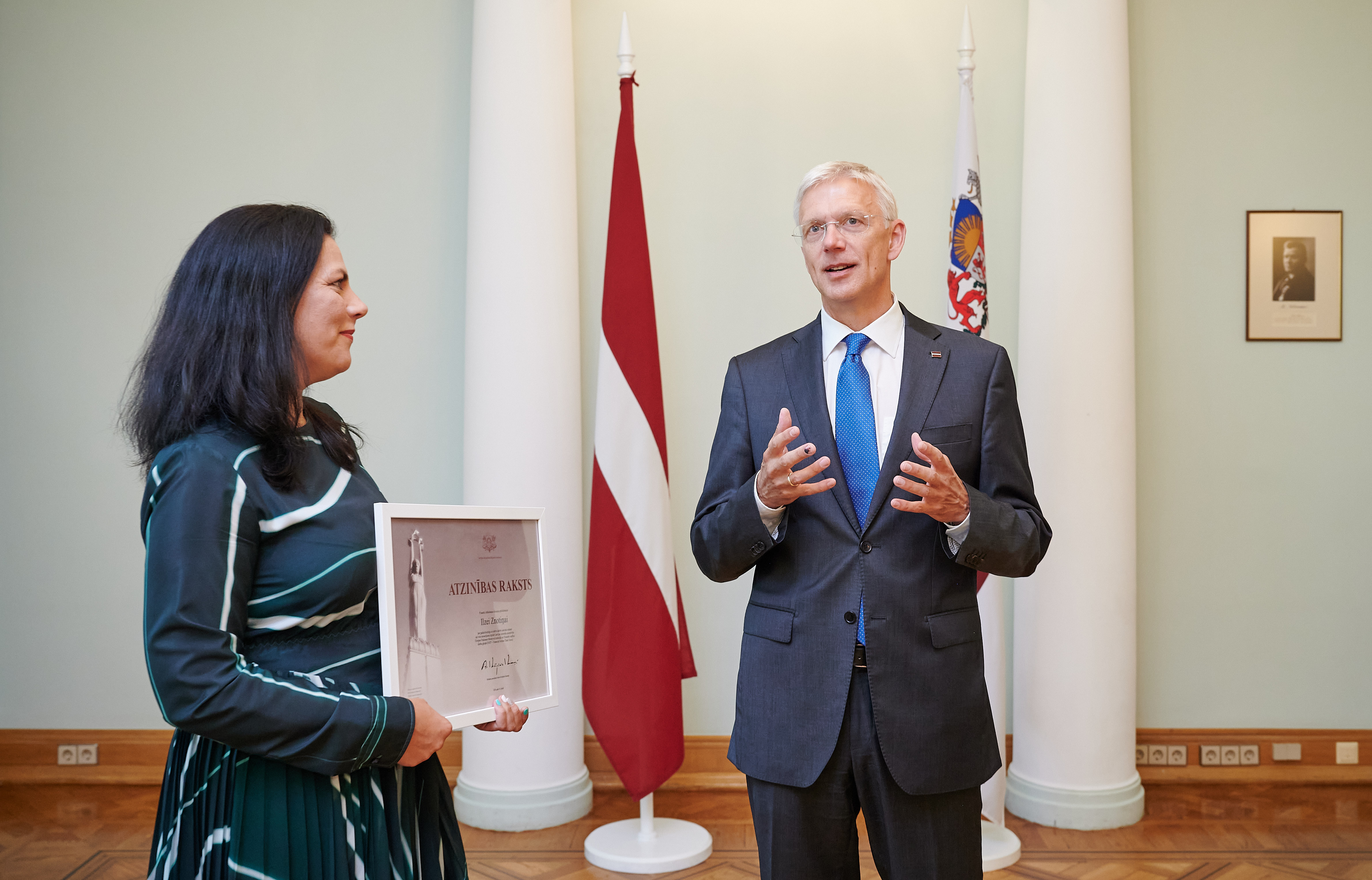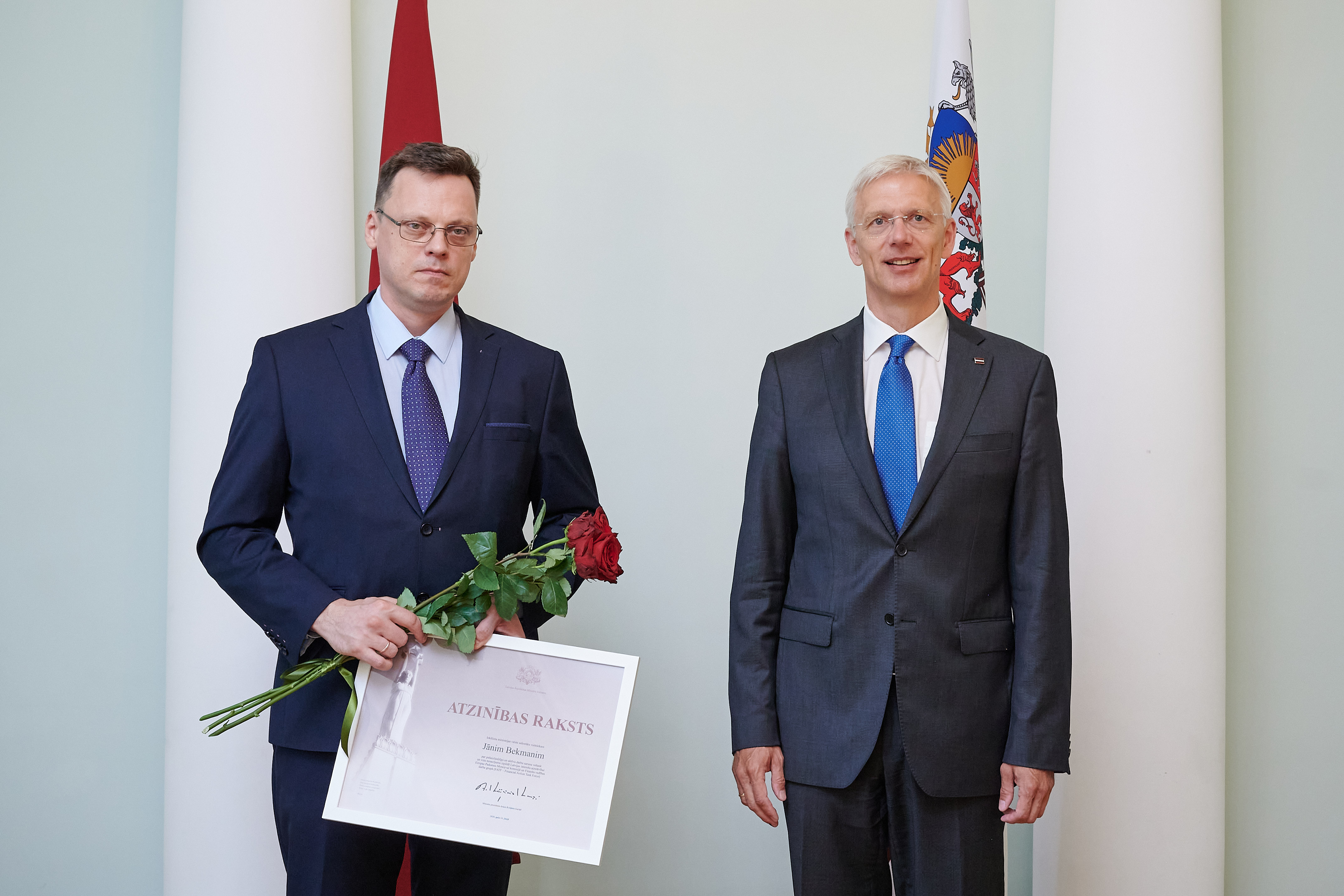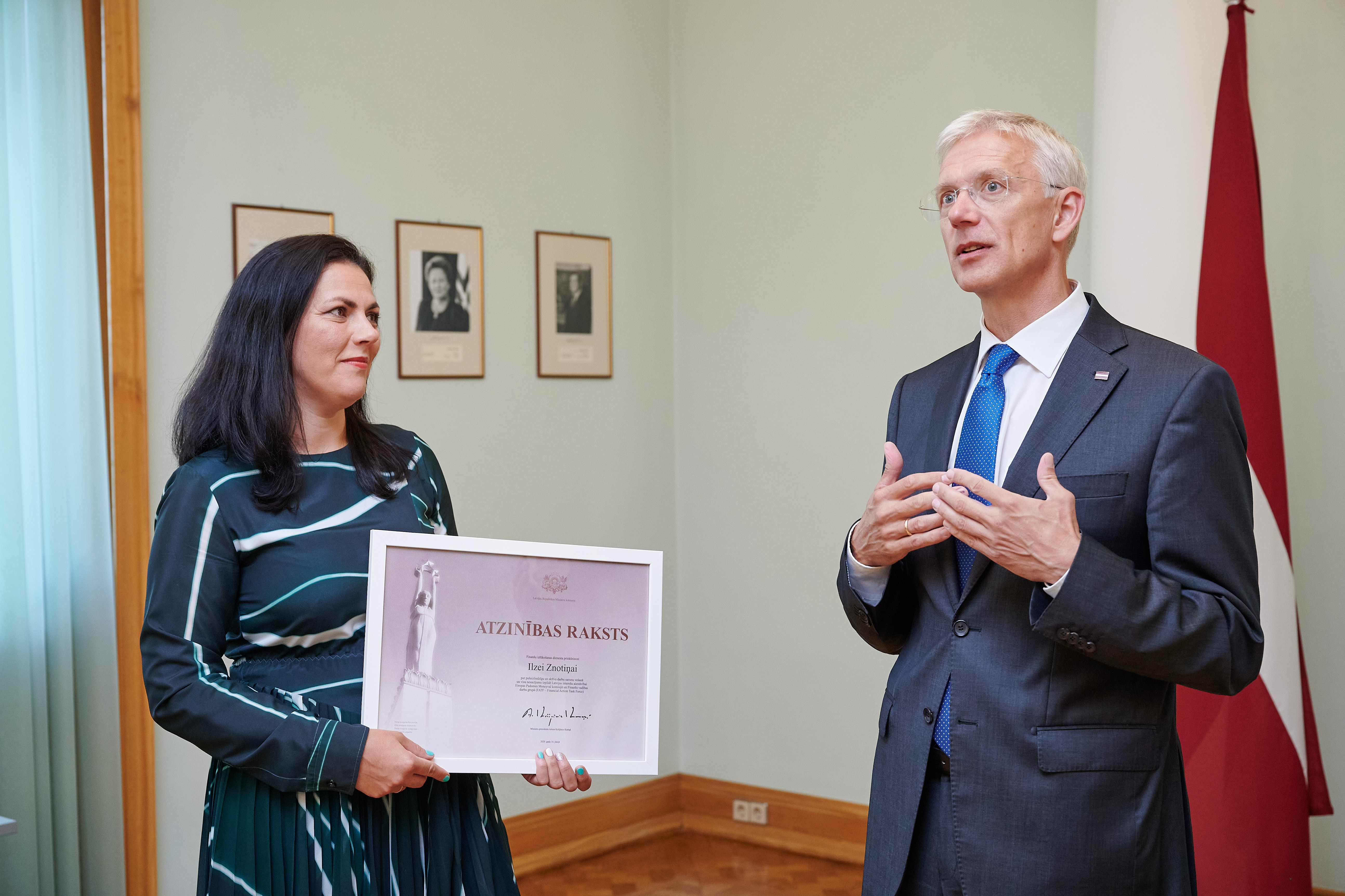 Ministru prezidents Krišjānis Kariņš Ministru kabineta Atzinības rakstus pasniedza "Moneyval” uzdevumu izpildes darba grupas vadītājai, Finanšu izlūkošanas dienesta priekšniecei Ilzei Znotiņai un darba grupas vadītāja vietniekiem – Iekšlietu ministrijas valsts sekretāra vietniekam Jānim Bekmanim, Finanšu ministrijas valsts sekretāra vietniecei finanšu politikas jautājumos Līgai Kļaviņai, Tieslietu ministrijas valsts sekretāra vietniecei tiesību politikas jautājumos Lailai Medinai, kā arī Ministru prezidenta parlamentārajai sekretārei Evikai Siliņai.