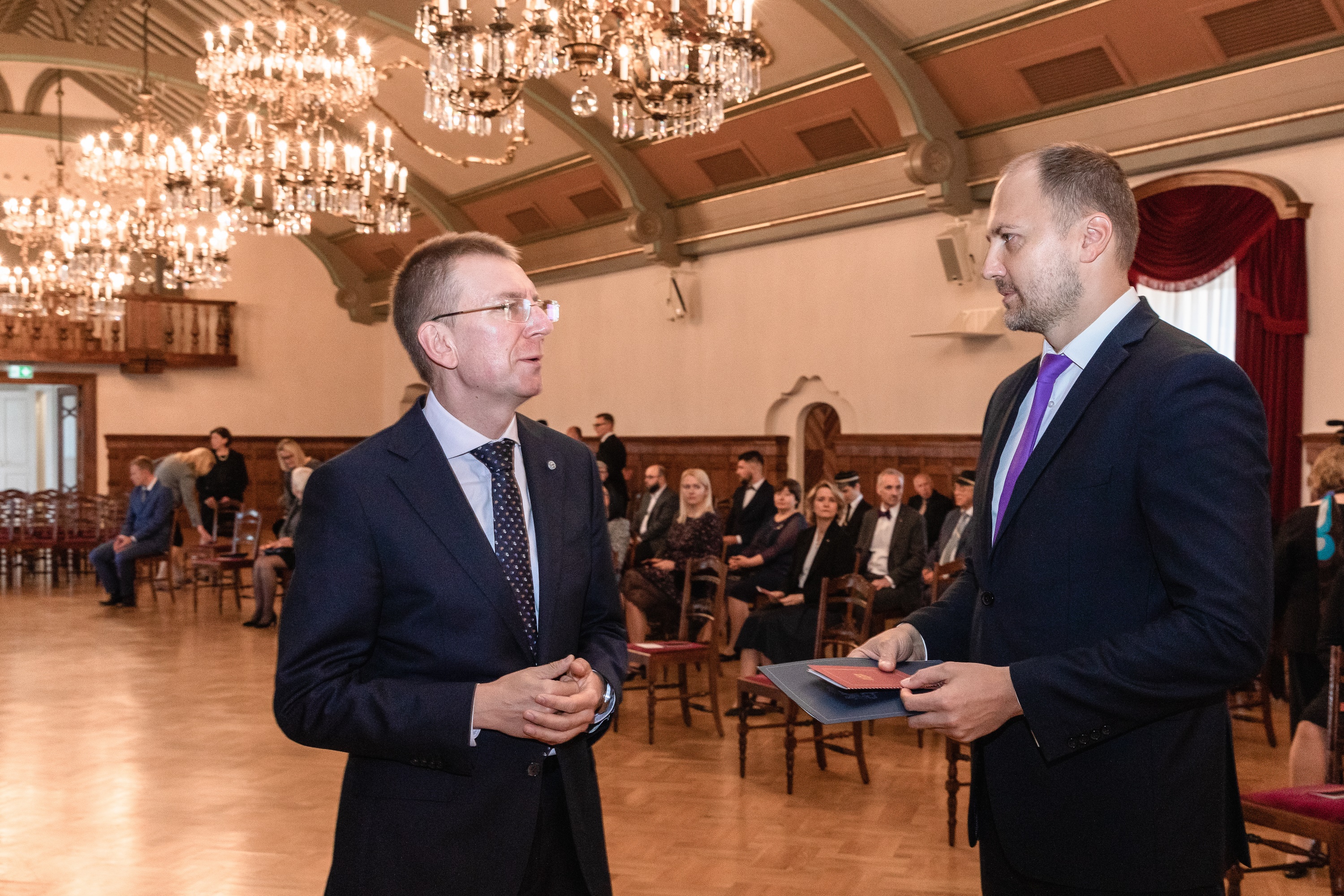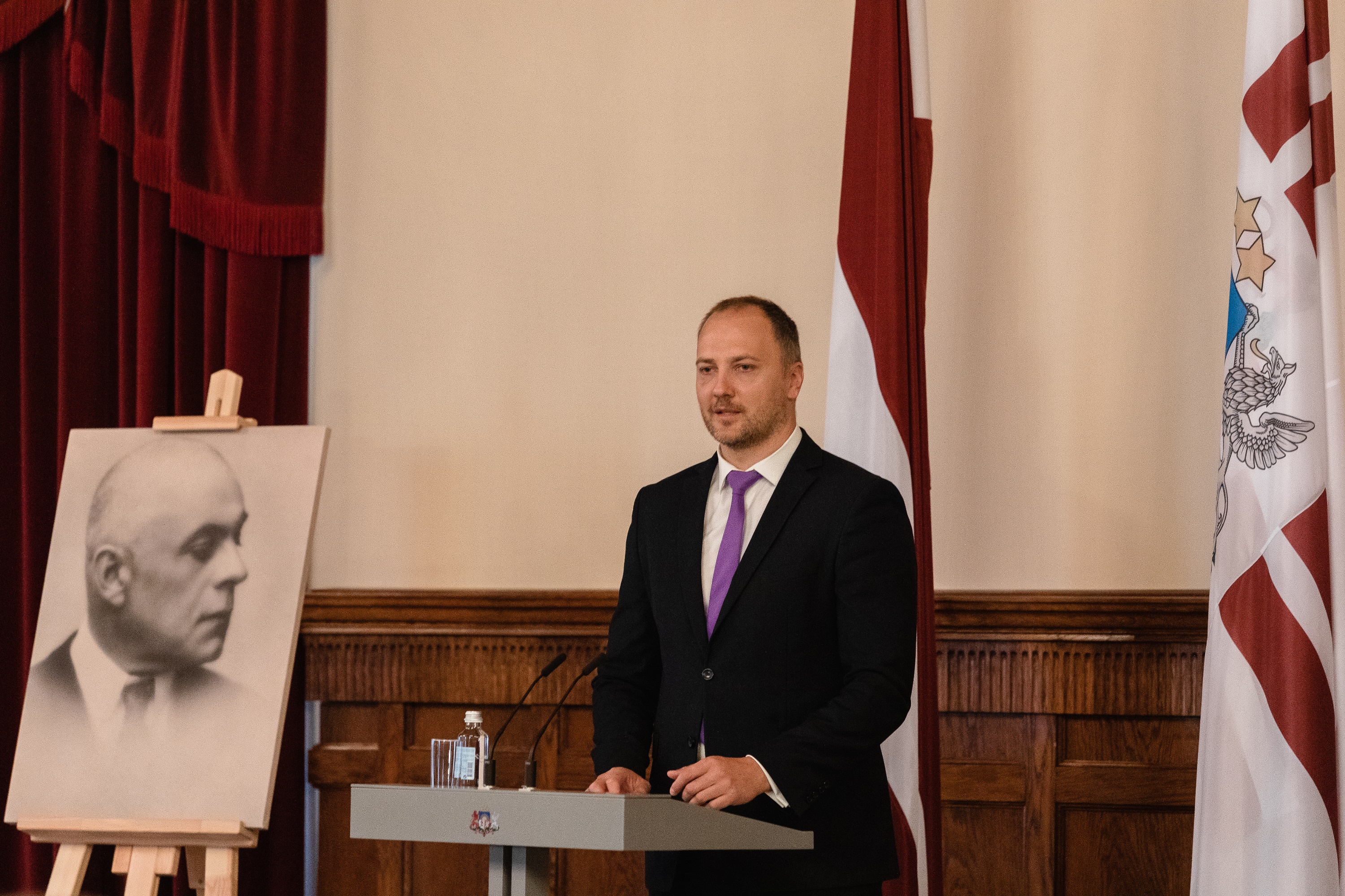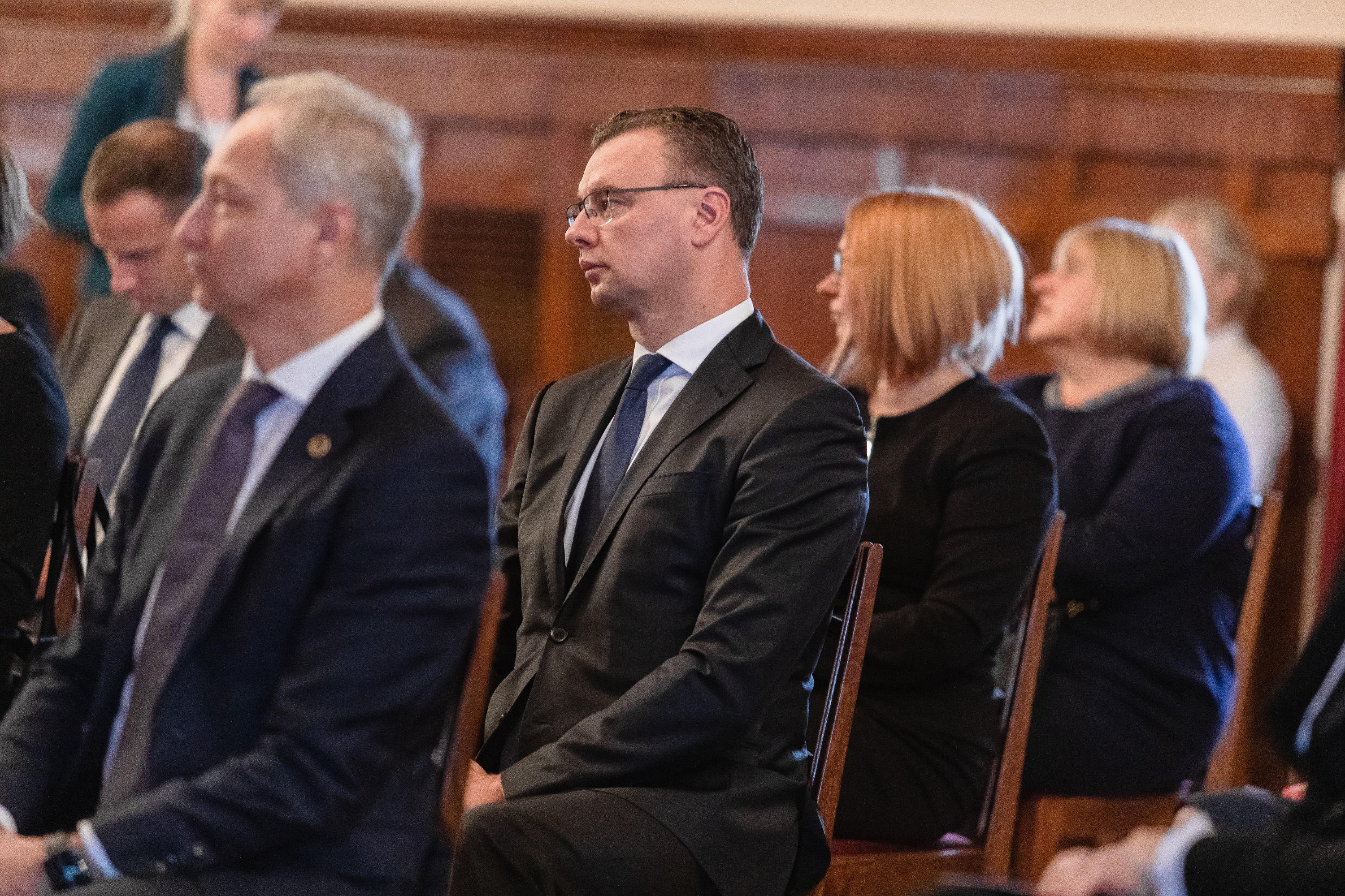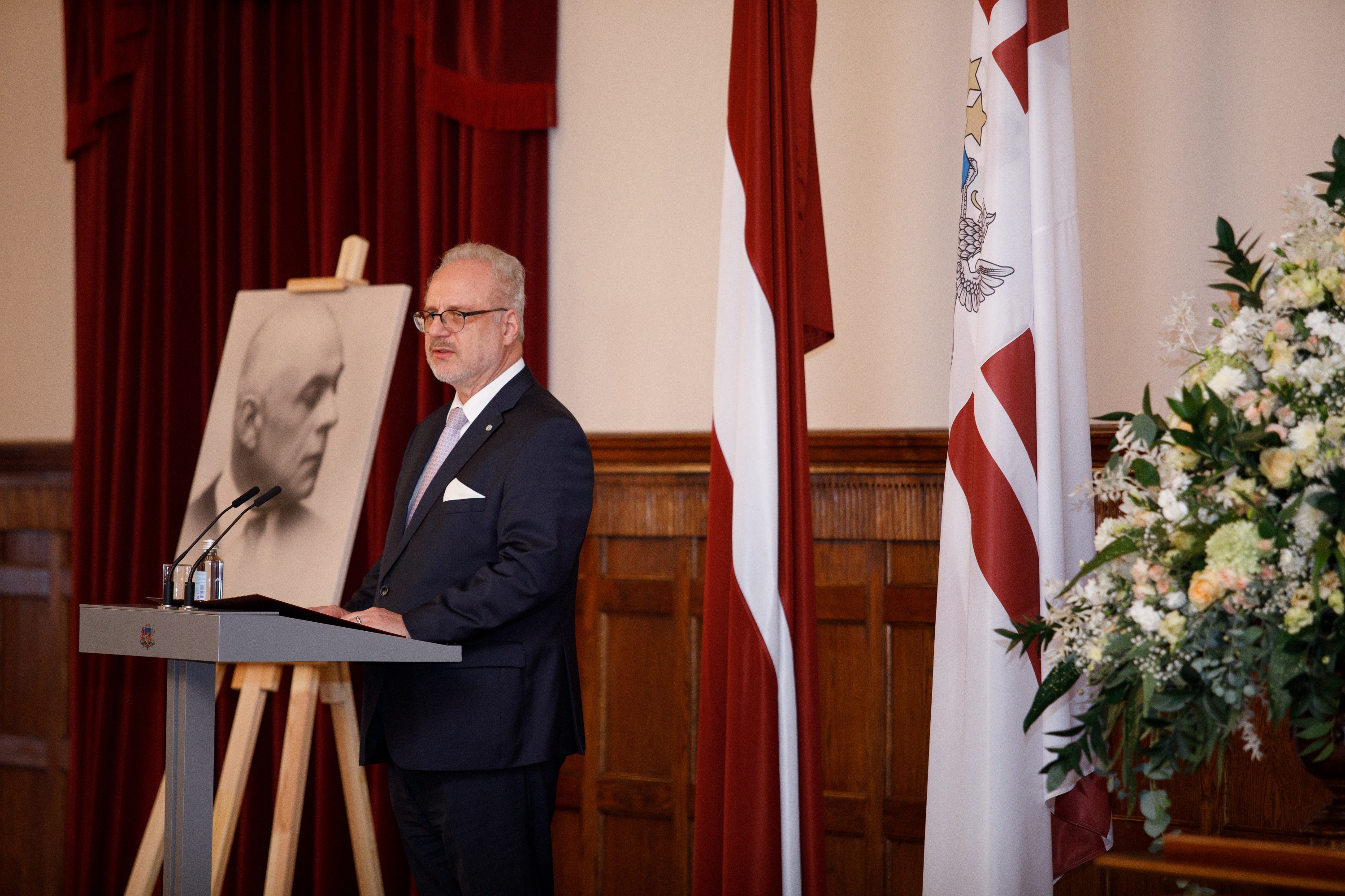 Pasākums Rīgas pilī par godu Latvijas pirmā iekšlietu ministra un ievērojamā Latvijas valsts un sabiedriskā darbinieka Miķeļa Valtera pārapbedīšanai Latvijā