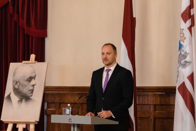 Pasākums Rīgas pilī par godu Latvijas pirmā iekšlietu ministra un ievērojamā Latvijas valsts un sabiedriskā darbinieka Miķeļa Valtera pārapbedīšanai Latvijā