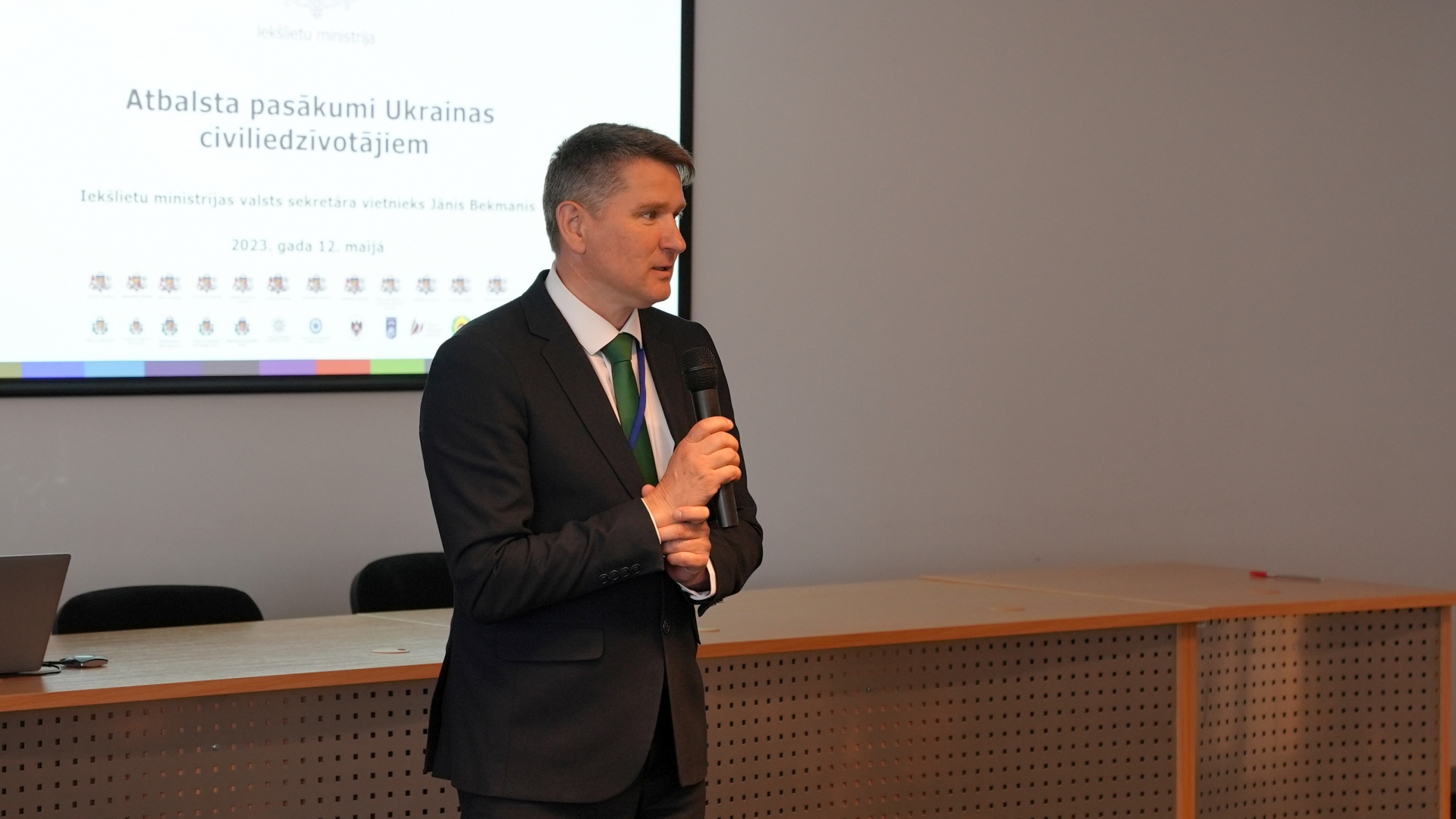 12.maijā Iekšlietu ministrijā notika pieredzes apmaiņas pasākums par Ukrainas civiliedzīvotāju uzņemšanu Latvijā. Pasākumā tika pārrunāts jau sniegtais atbalsts Ukrainas civiliedzīvotājiem, kuri nonākuši Latvijā, bēgot no Krievijas militārās agresijas Ukrainā, kā arī tika diskutēts par to, kādus risinājumus valstiskā un pašvaldību līmenī vajadzētu pilnveidot vai ieviest, lai atvieglotu un uzlabotu Ukrainas bēgļu ikdienu pašvaldībās.