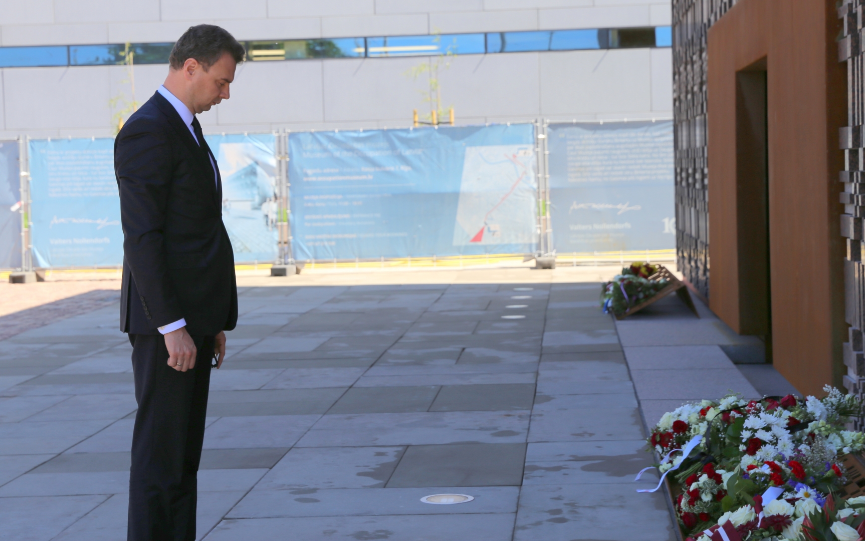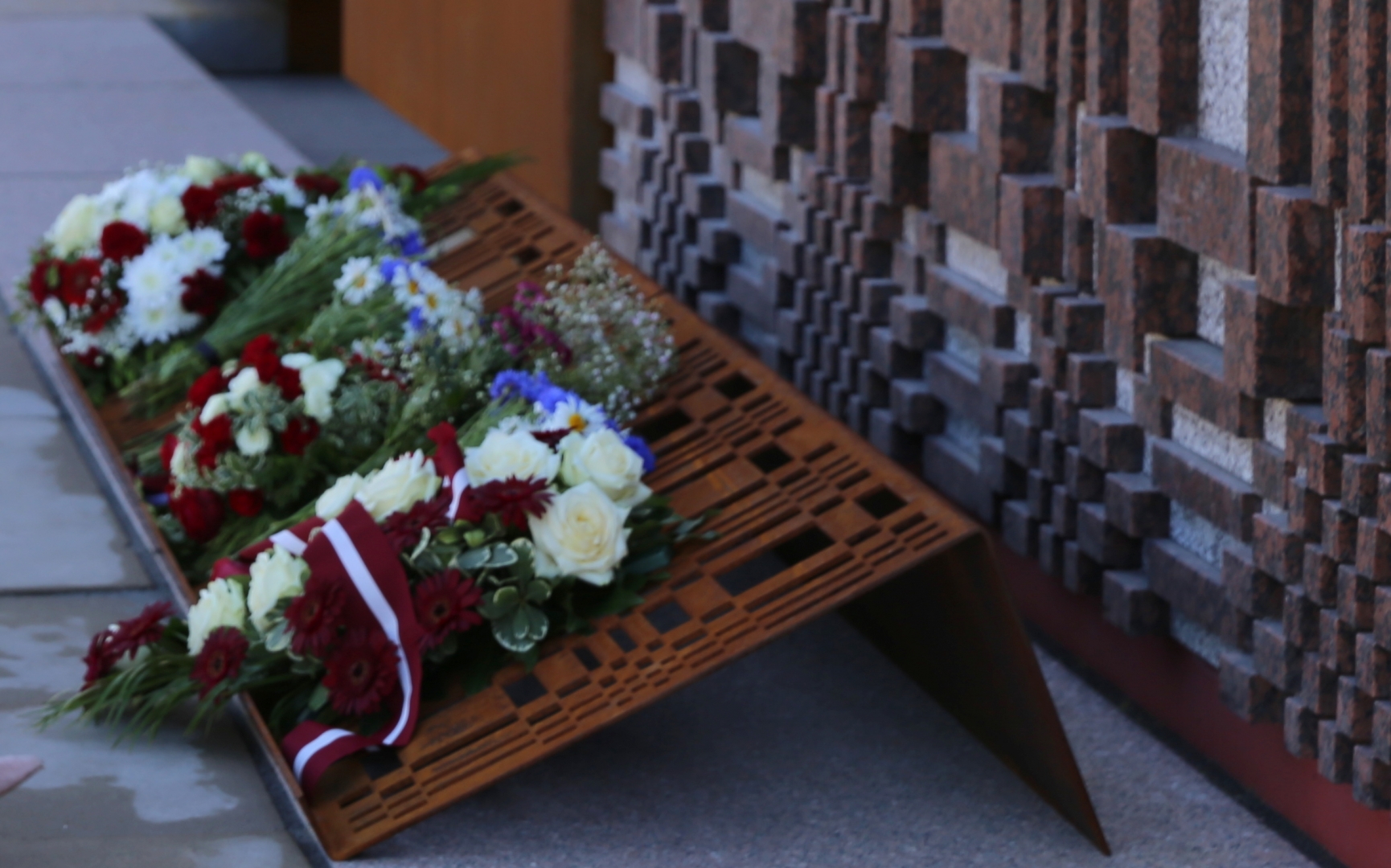 Ziedu nolikšana pie Okupācijas muzeja, pieminot Komunistiskā genocīda upurus