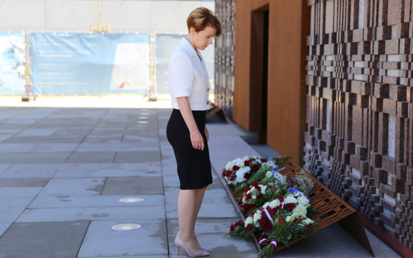 Iekšlietu ministre Marija Golubeva un Iekšlietu ministrijas valsts sekretārs Dimitrijs Trofimovs piedalījās ziedu nolikšanas ceremonijā pie Latvijas Okupācijas muzeja, pieminot Komunistiskā genocīda upurus.