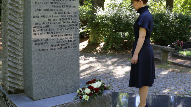 Iekšlietu ministre noliek ziedus Rīgas Meža kapos