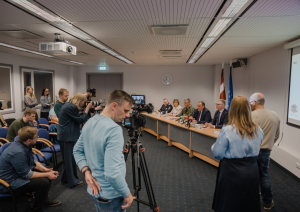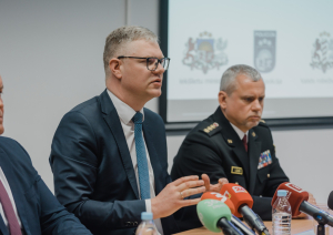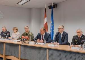 Preses konferencē līdz ar ministru piedalījās arī Pilsonības un migrācijas lietu pārvaldes priekšniece Maira Roze, Valsts robežsardzes priekšnieks ģenerālis Guntis Pujāts, Valsts policijas priekšnieks ģenerālis Armands Ruks, Rīgas domes priekšsēdētājs Vilnis Ķirsis un Rīgas pašvaldības policijas priekšnieks Juris Lūkass.