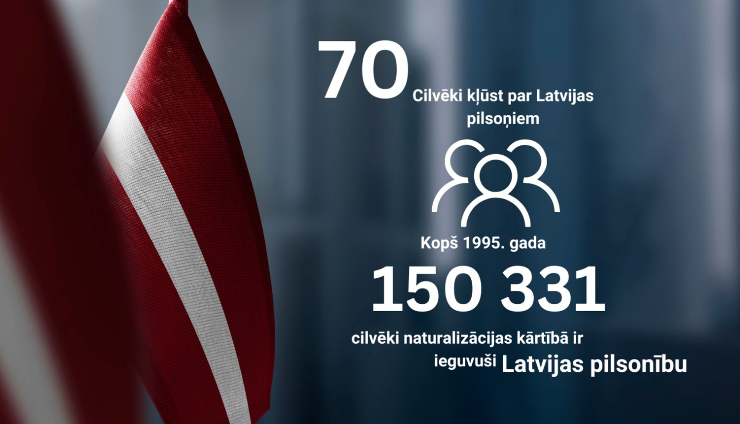 Latvijas pilsonībā naturalizācijas kārtībā ir uzņemtas 150 331 personas: 1995. gadā – 984; 1996. gadā – 3 016; 1997. gadā – 2 992; 1998. gadā – 4 439; 1999. gadā – 12 427; 2000. gadā – 14 900; 2001. gadā – 10 637, 2002. gadā – 9844; 2003. gadā – 10 049; 2004. gadā – 16 064; 2005. gadā – 19 169; 2006. gadā – 16 439; 2007. gadā – 6826; 2008. gadā – 3 004; 2009. gadā – 2 080; 2010. gadā – 2 336; 2011. gadā – 2 467; 2012. gadā – 2 213; 2013. gadā – 1 732; 2014. gadā – 939; 2015. gadā – 971; 2016. gadā – 987; 2017. gadā – 915; 2018. gadā – 930; 2019. gadā – 808; 2020. gadā – 725; 2021. gadā – 419; 2022. gadā – 518; 2023. gadā – 595; 2024 – 694, 2025. gadā – 212 personas.