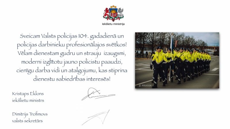 Sveicam Valsts policijas 104. gadadienā un policijas darbinieku profesionālajos svētkos!