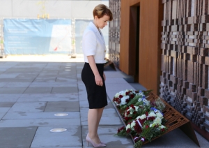 Iekšlietu ministre Marija Golubeva un Iekšlietu ministrijas valsts sekretārs Dimitrijs Trofimovs piedalījās ziedu nolikšanas ceremonijā pie Latvijas Okupācijas muzeja, pieminot Komunistiskā genocīda upurus.