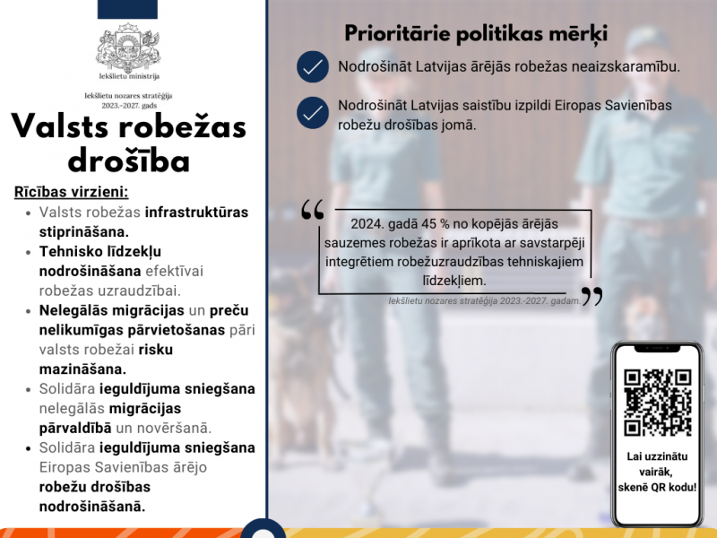 Viena no ministrijas politikas jomām, kuras ietvaros ministrijas padotības iestādes īsteno Latvijas Republikas valsts robežas uzraudzību un kontroli, nelegālās imigrācijas novēršanu un noziedzīgu nodarījumu novēršana atbilstoši Latvijas Republikas normatīvajiem aktiem un Eiropas Savienības noteiktajām prasībām.